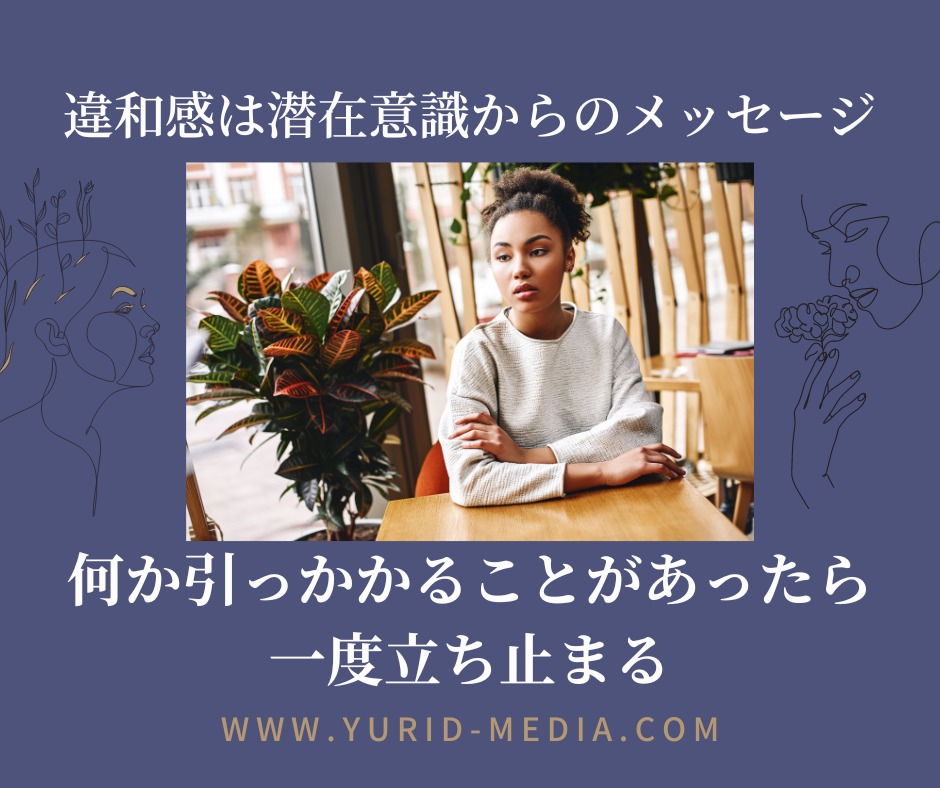違和感がある時、潜在意識と繋がっている直感がそっちに行かない方がいいよと教えてくれています。違和感がある時は立ち止まって、今やっている行動の逆のことをしてみるとか、見ている対象から引いて見てみるとか、そういうことをした方が良いです。